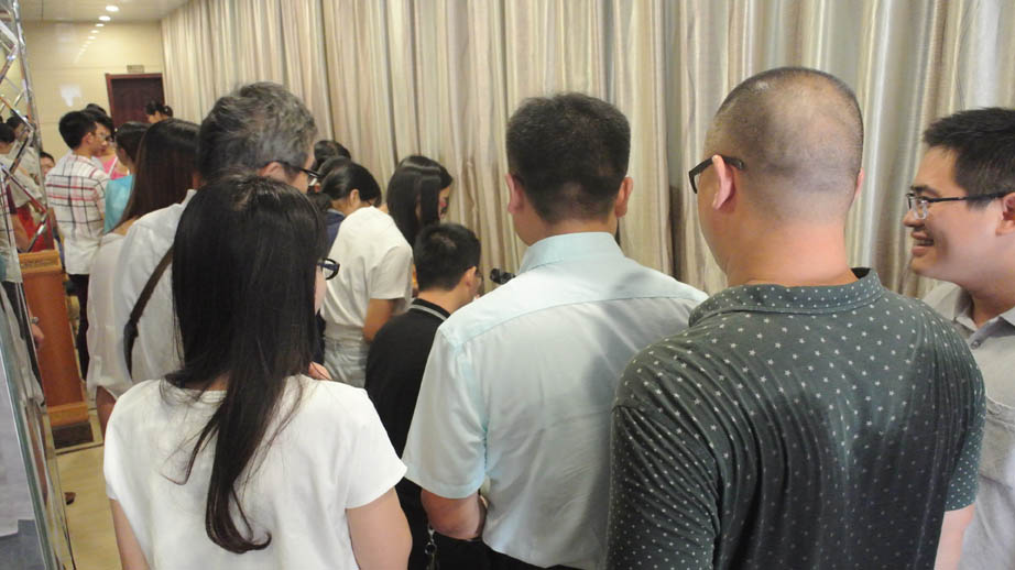 與會(huì)人員排隊(duì)使用尼康顯微鏡